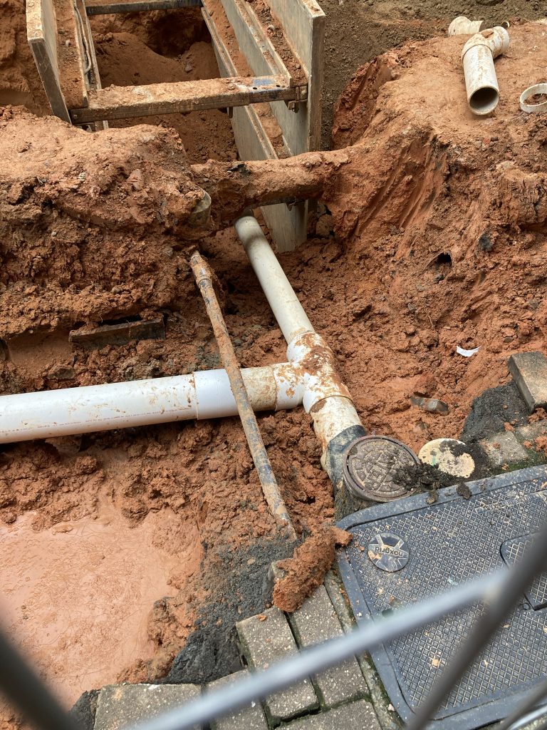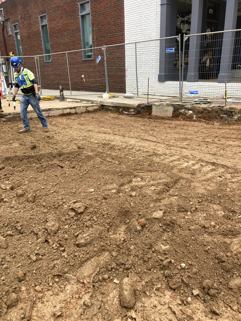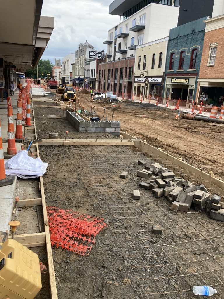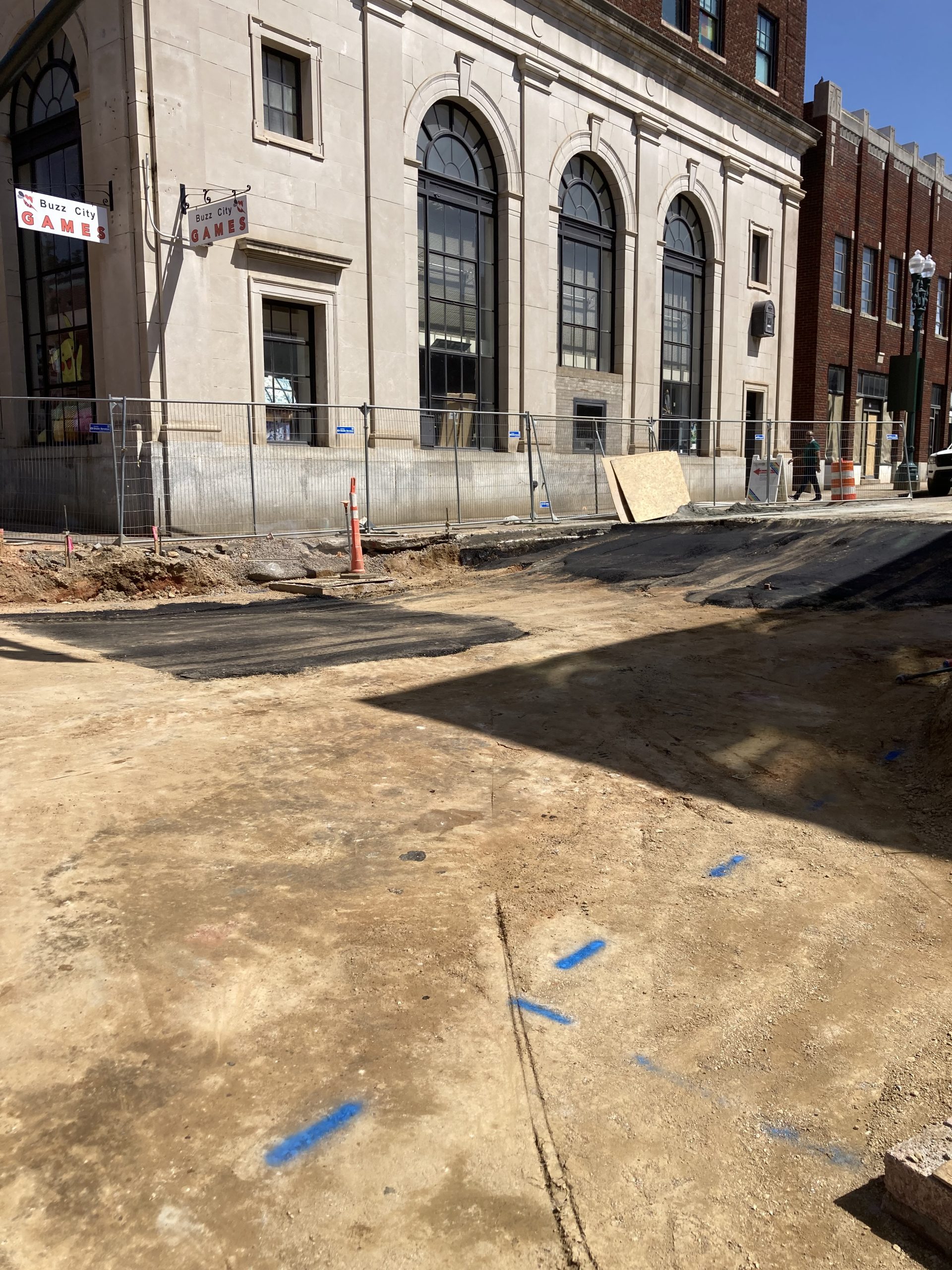 North of Cabarrus Avenue infrastructure crews installed the new sewer main and are scheduled to complete the lateral connections today. Next week, infrastructure crews will continue working on the water line starting at Cabarrus and moving north toward the Library. There may be some additional fence movement but Library access will be open.