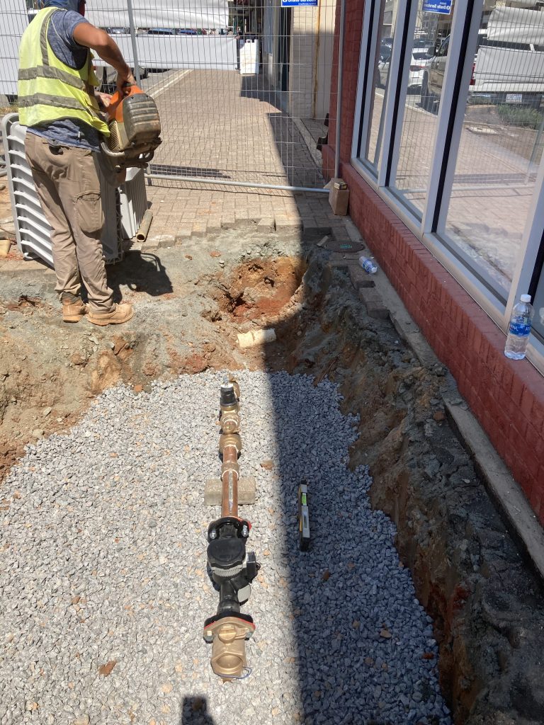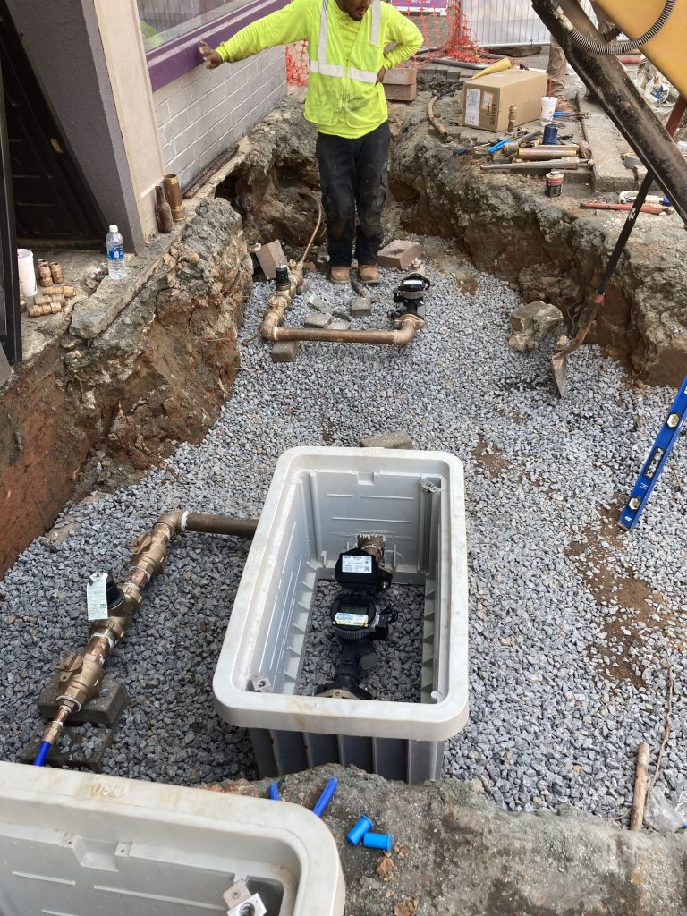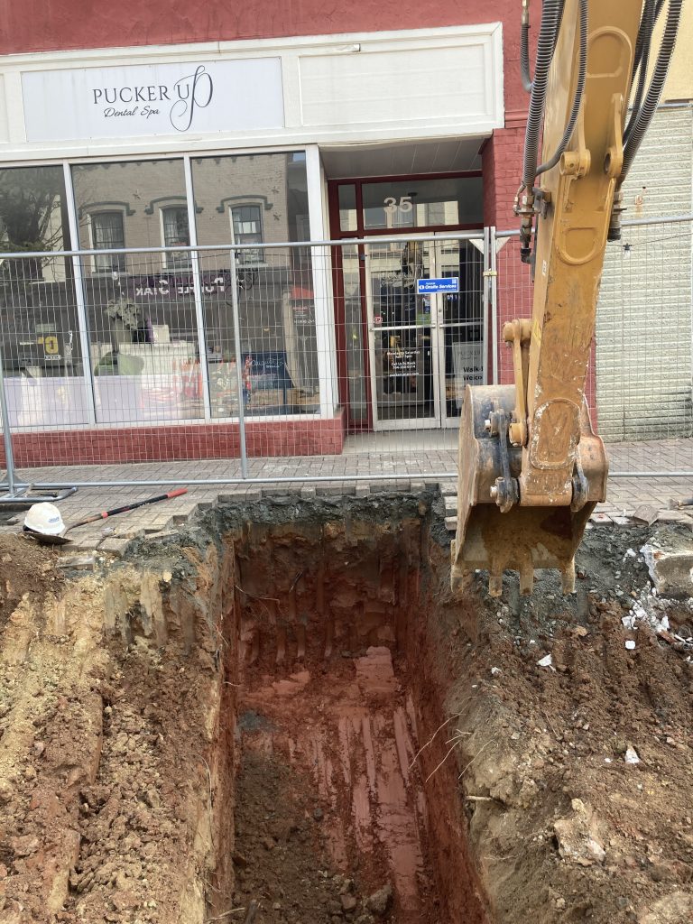 Once the new water line and services are in place, the existing 8″ and 10″ water lines can be removed to make space for the new storm drainage pipes on the west side of Union Street.