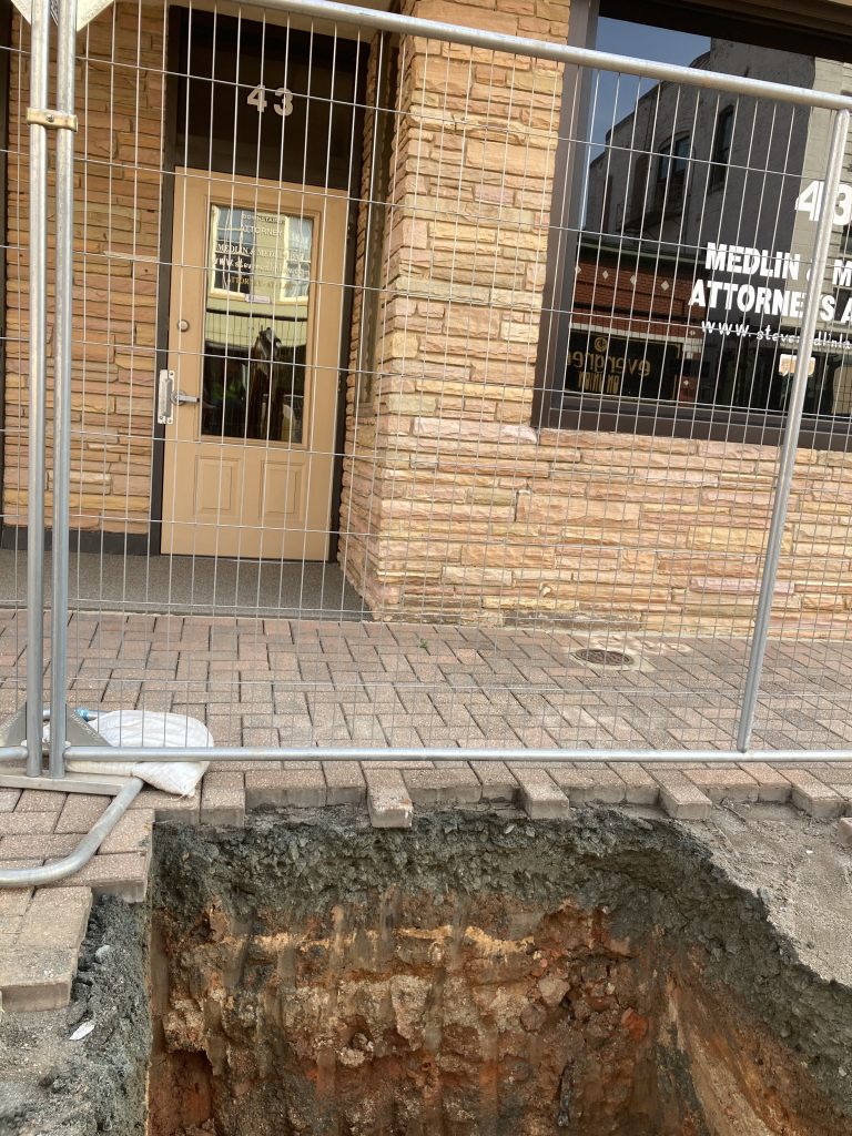 Downtown Streetscape Crews are nearing completion of the service installations for water and sewer within the current work zone. Next week they will tie-in the new 16″ water main on Union St. to the existing water line on Barbrick.