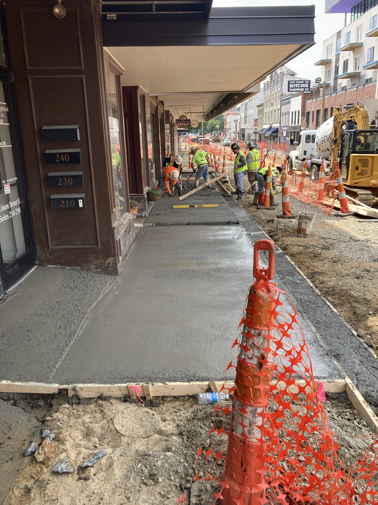 This week, Downtown Streetscape crews poured 237 LF of new sidewalks on the east side of Union Street. Sidewalk crews also worked on installing heavy-duty reinforcement and formwork for the Courthouse Plaza connection. Early next week, that area will be poured.