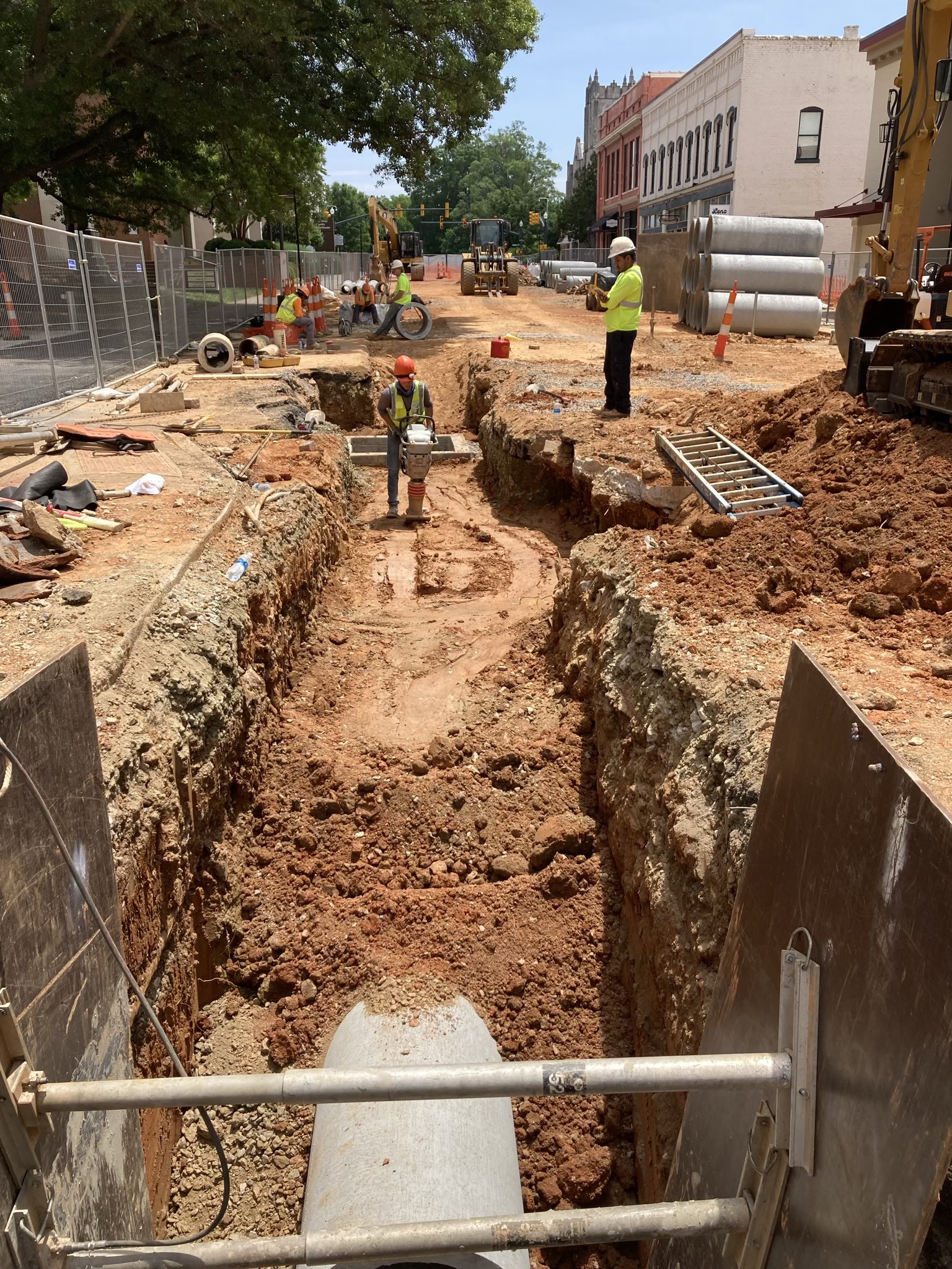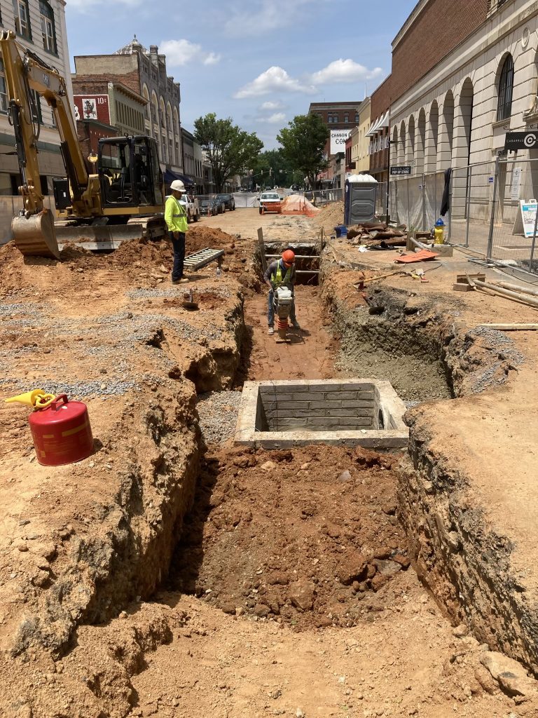 This week, Downtown Streetscape crews continued installing storm drainage on Union St., working from Barbrick Ave. north towards the midblock crosswalk. This work will continue through next week.